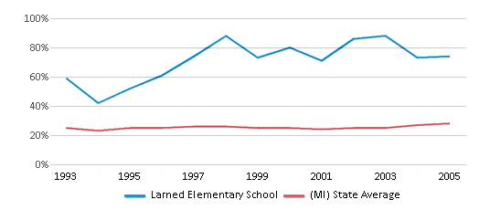 95% of Larned Elementary School students are Black, and 5% of students are White.