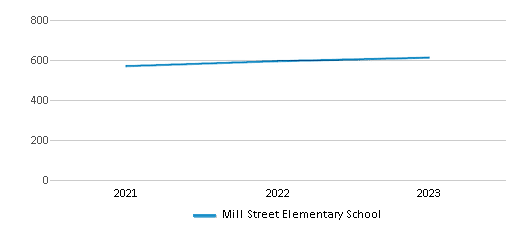 Mill Street Elementary School's student population of 634 students has grown by 11% over five school years.