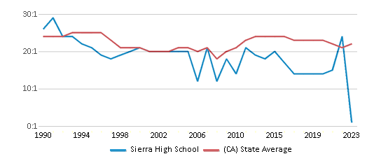 Sierra High School has a student ration of 19:1, which is lower than the California state average of 21:1.